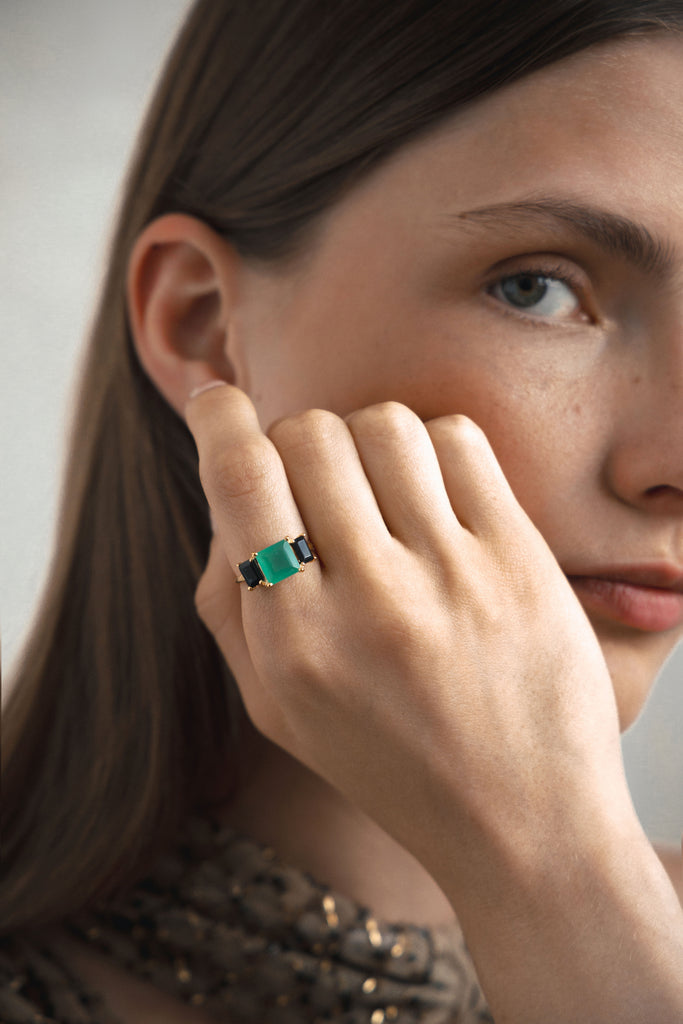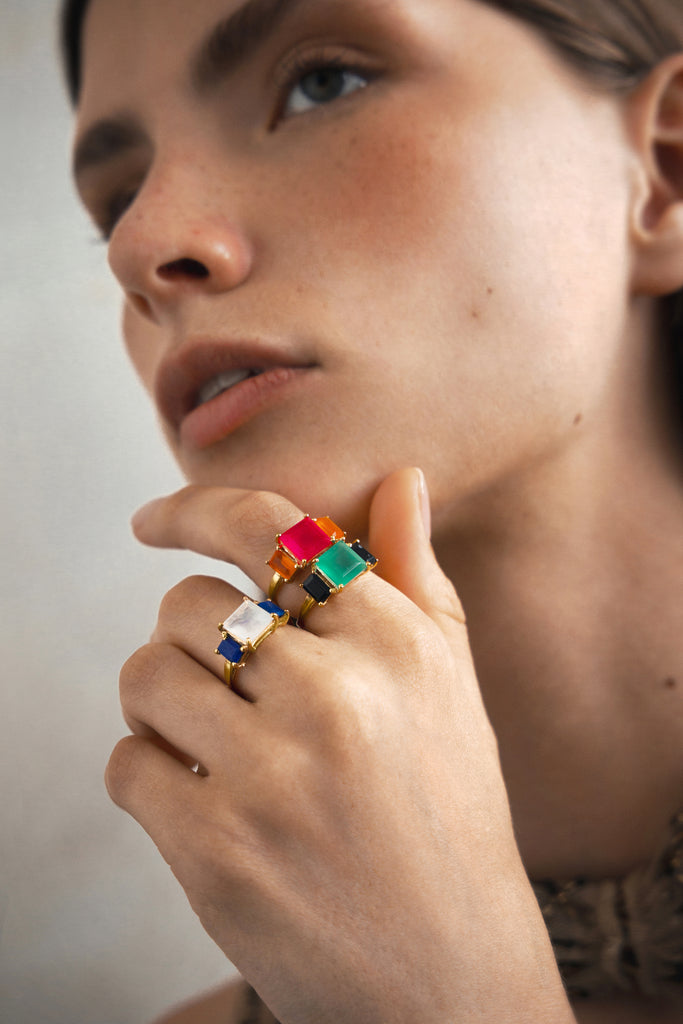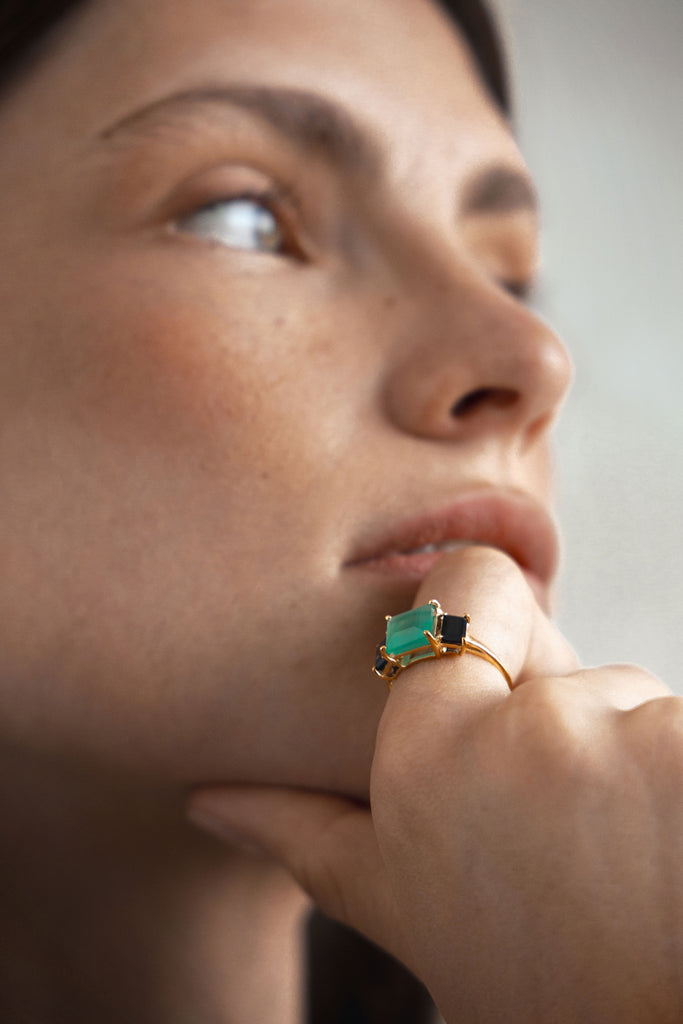 El Anillo Antonella destaca por su diseño moderno y lleno de color. Con una combinación original de piedras como el Cuarzo Verde y el Ónix Negro, esta joya aporta frescura y elegancia a cualquier look. Fabricado en Plata de Ley 925 bañada en Oro de 18k, es una pieza sofisticada y versátil, ideal para quienes buscan un anillo especial o el regalo perfecto.