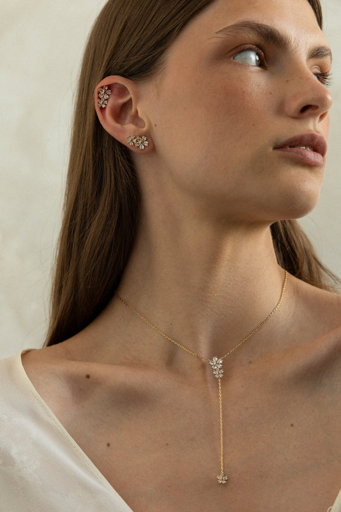 Un tributo a la naturaleza y la delicadeza femenina, los Pendientes Florence capturan la esencia de la elegancia atemporal. Bañados en Oro de 18 quilates y diseñados para realzar tu esencia en cualquier ocasión.