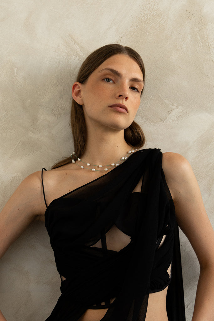 Con una longitud de 80 cm, este colgante es perfecto para llevar con dos o tres vueltas, permitiendo jugar con su forma y adaptarlo a diferentes estilos y ocasiones.