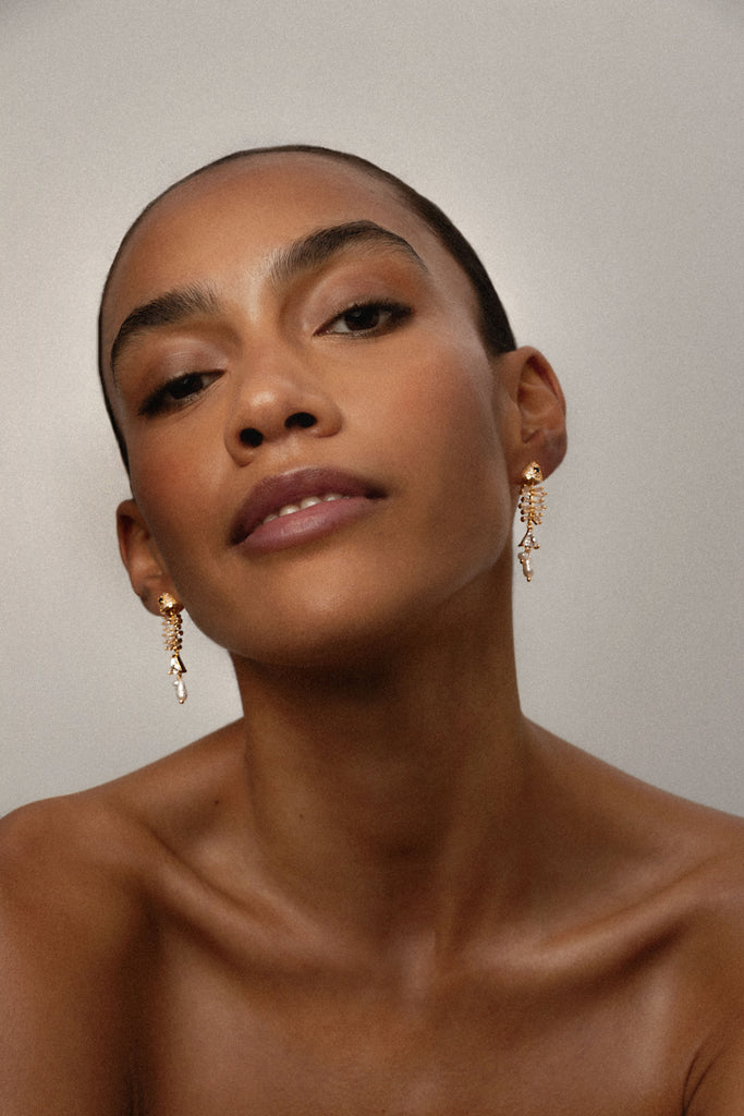 Los Pendientes Pesce Perla son una reinterpretación contemporánea de nuestro diseño más icónico y aclamado. Elaborados en Latón bañado en Oro de 18k, combinan un estilo artístico y moderno con la sofisticación de las circonitas talladas en baguette, brillante y triangular. Este pendiente en forma de esqueleto de pez es una obra de diseño única que refleja originalidad y lujo.