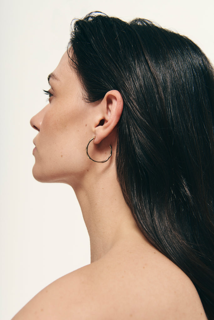 Descubre en los aros Nolita nuestros aros medianos, que marcarán la diferencia. Esculpidos y acabados a mano en nuestro taller hasta alcanzar la perfección deseada, cuentan con un diseño limpio y orgánico.