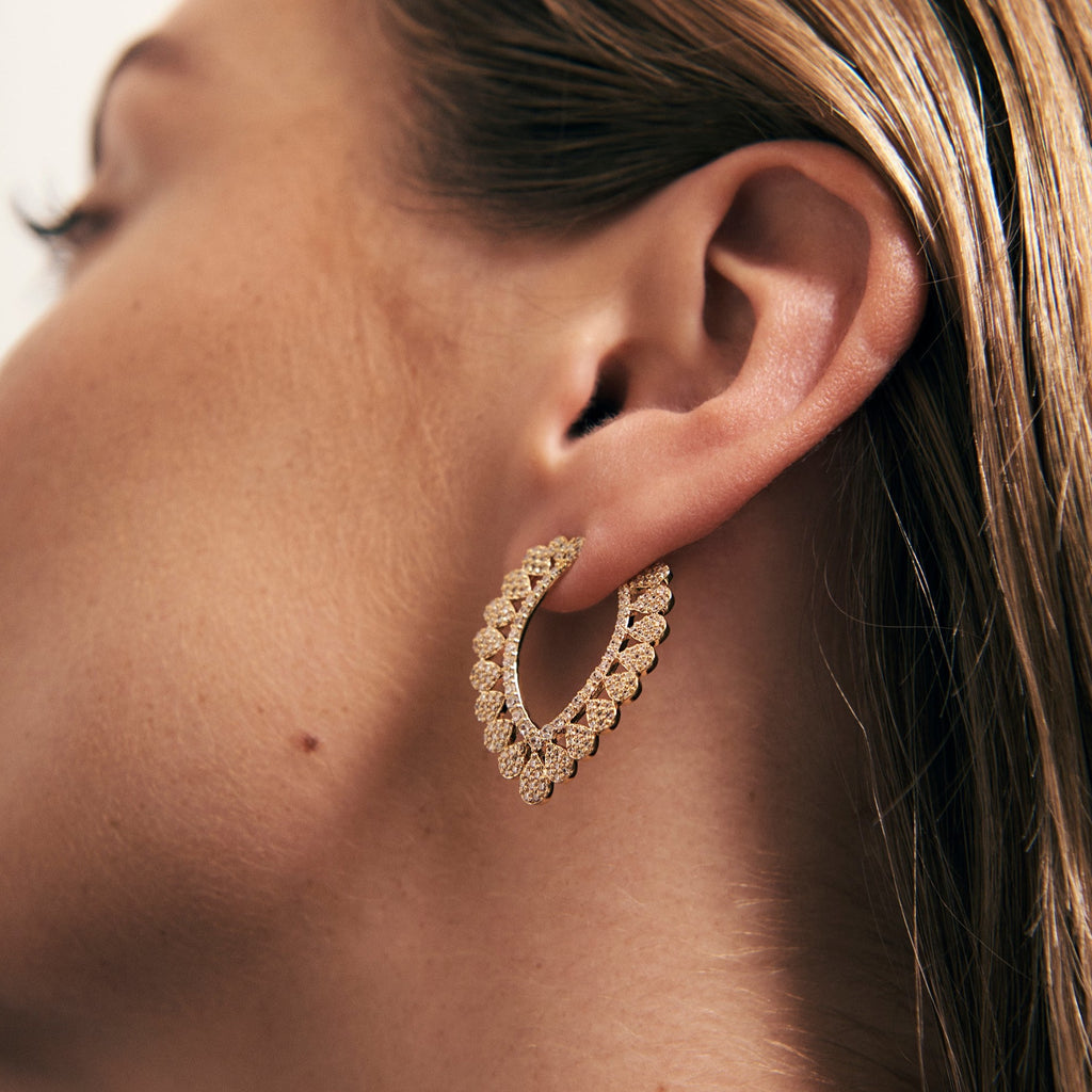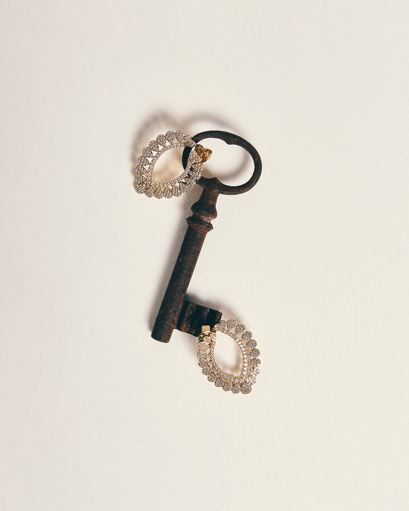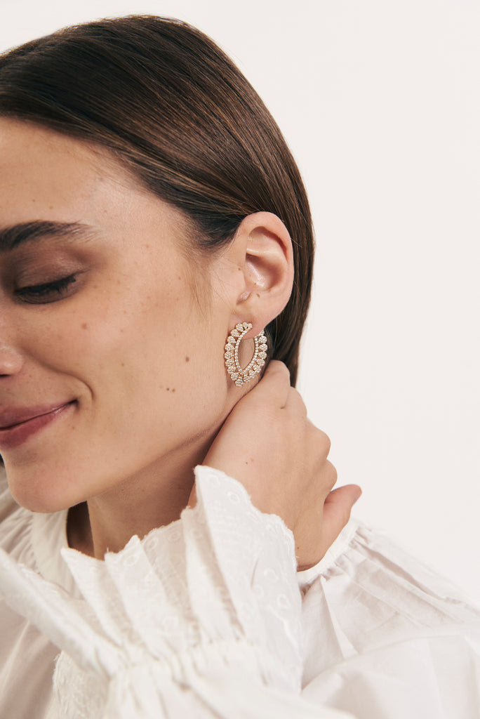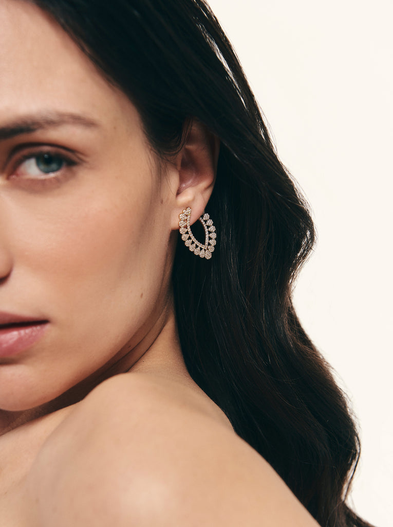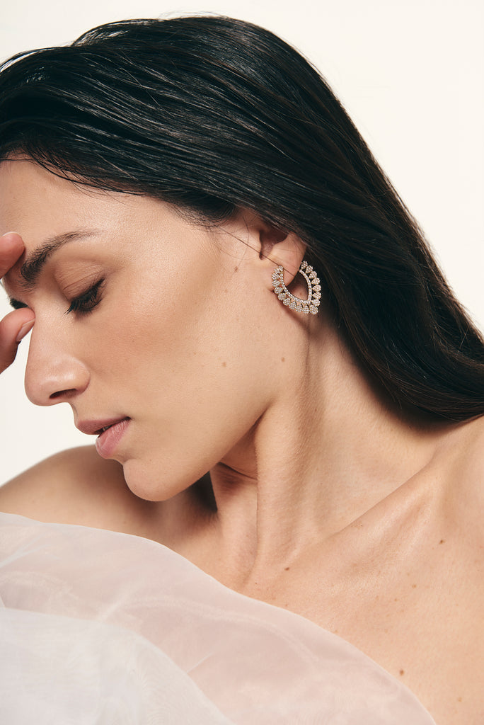Los pendientes Regina, son la joya que toda mujer estaba esperando, compuesta por circonitas engastadas de color blanco, se convertirá en el diseño más elegante por excelencia y completará tus looks más especiales.