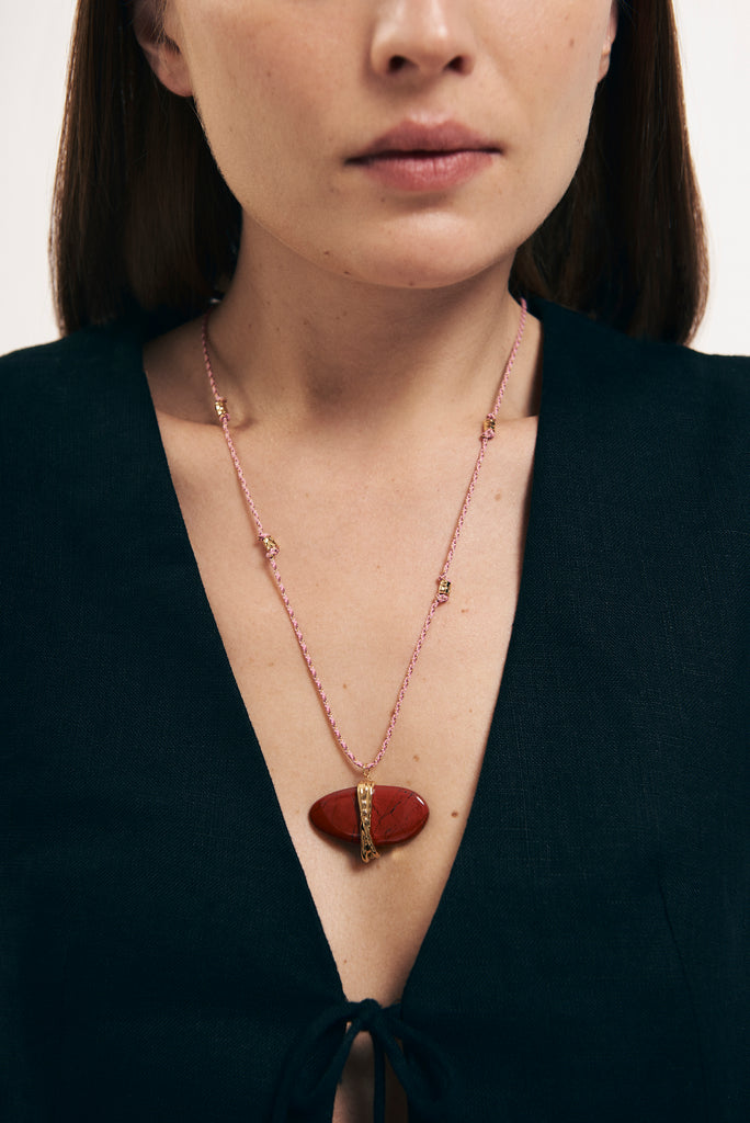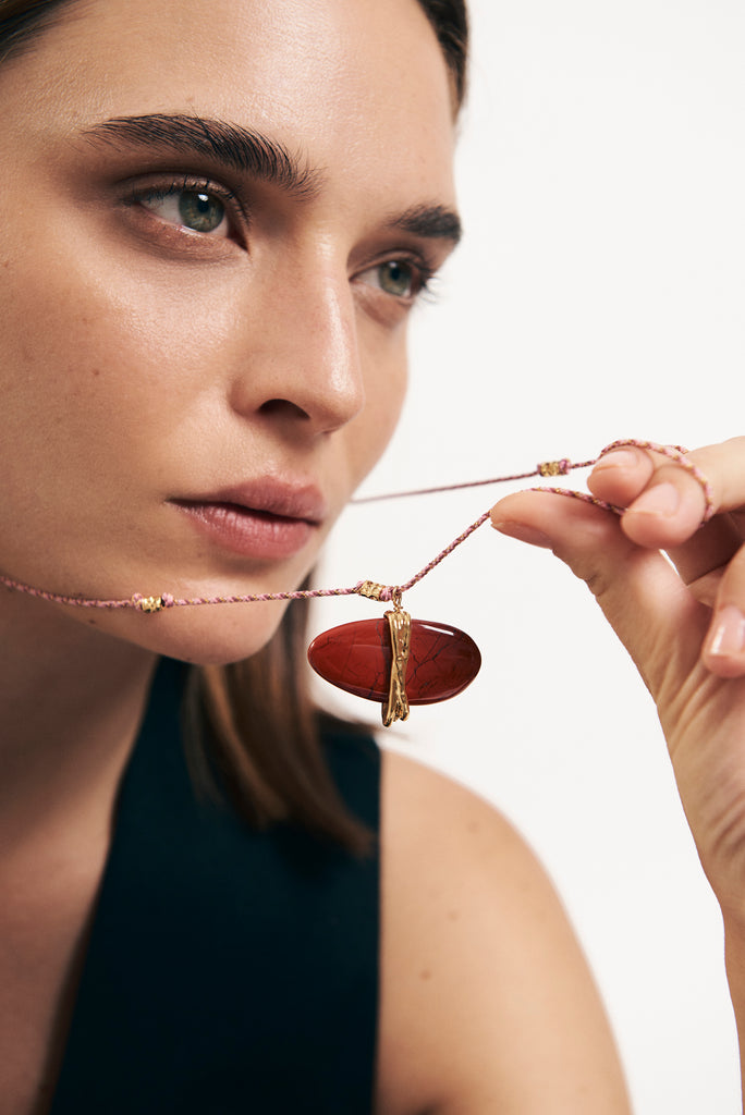 This design has a great protagonist, red Jasper; A stone associated with energizing the body, giving us strength and vitality. It is considered a stone of cleansing and balance.