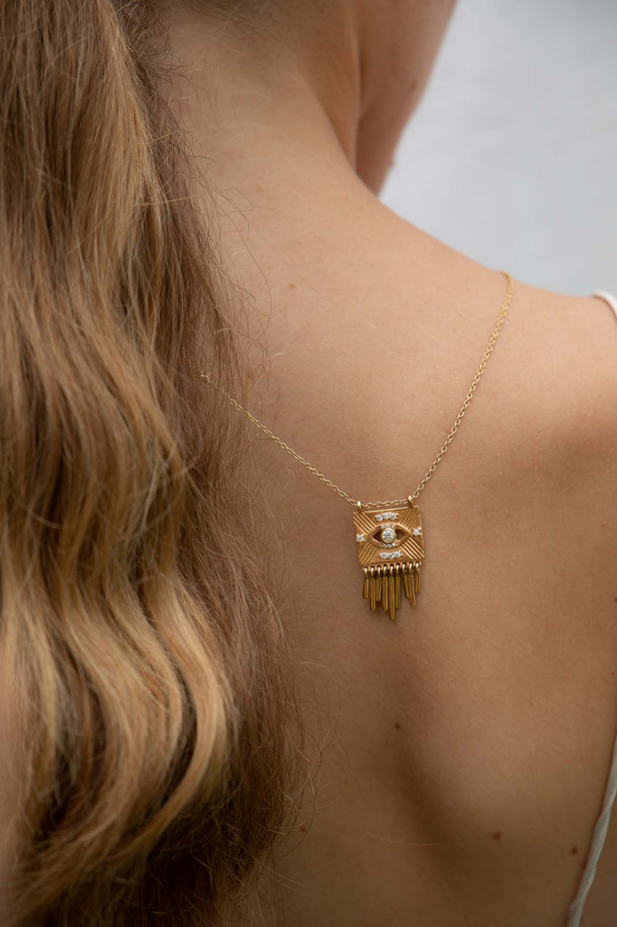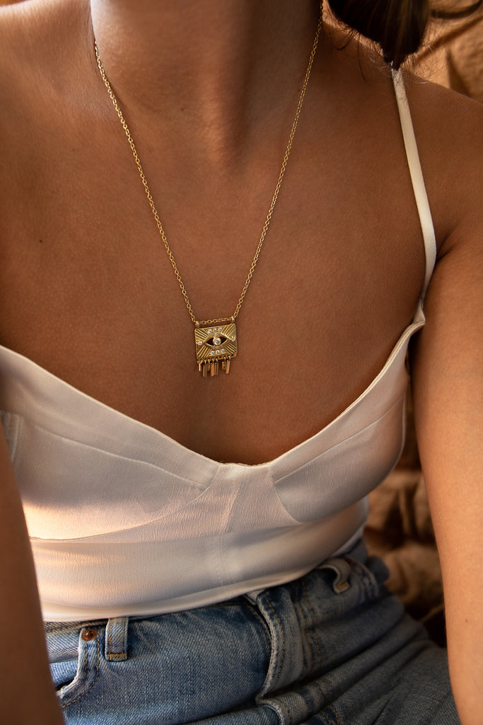 Inspired by the Turkish eye to which protective forces are attributed, and which is widely used as a talisman or amulet against the evil eye and bad energy. With eight set zircons and nine sticks that become the jewel you need to complete your looks with movement.
