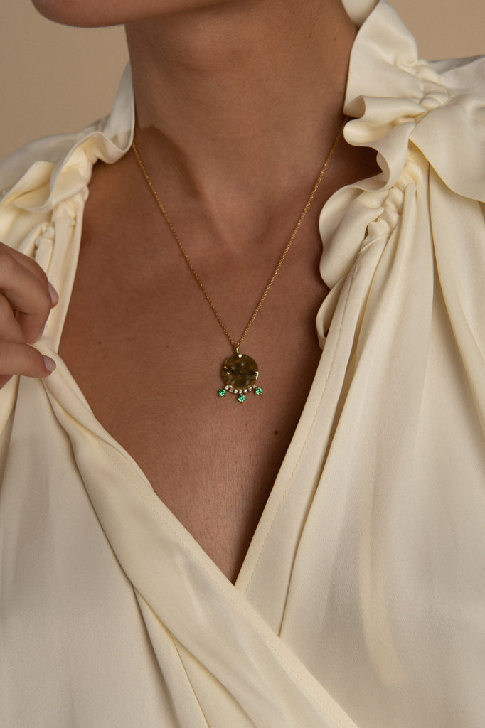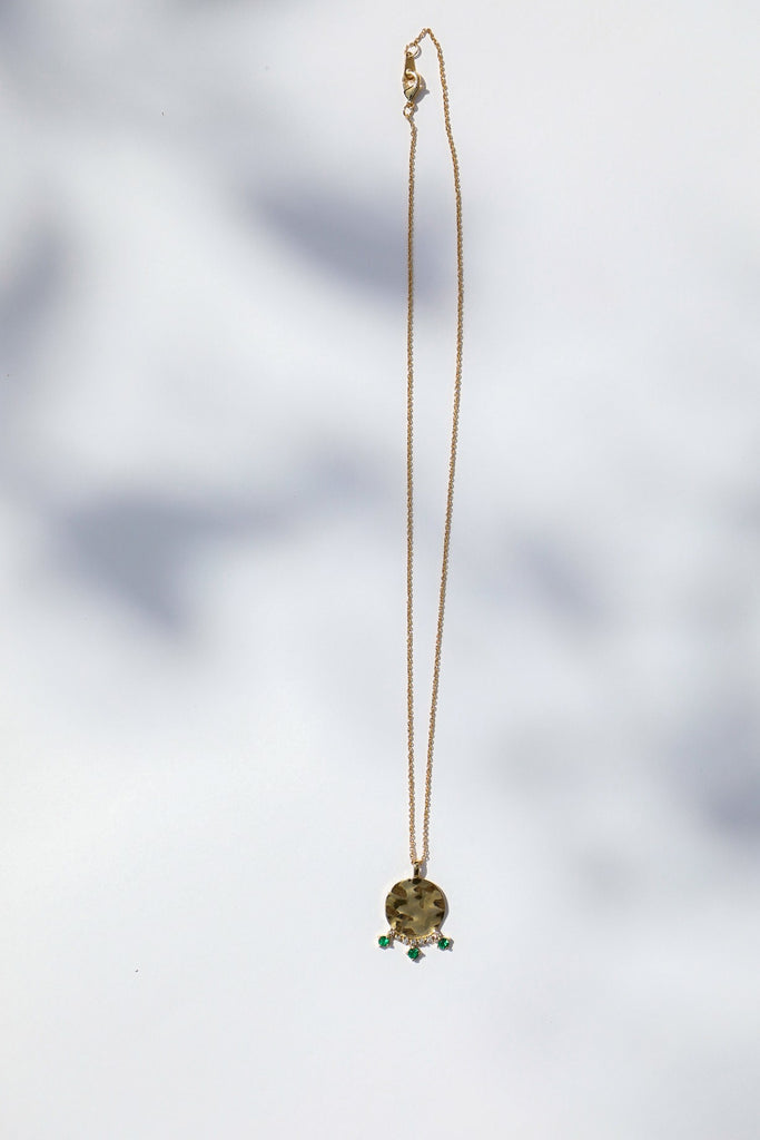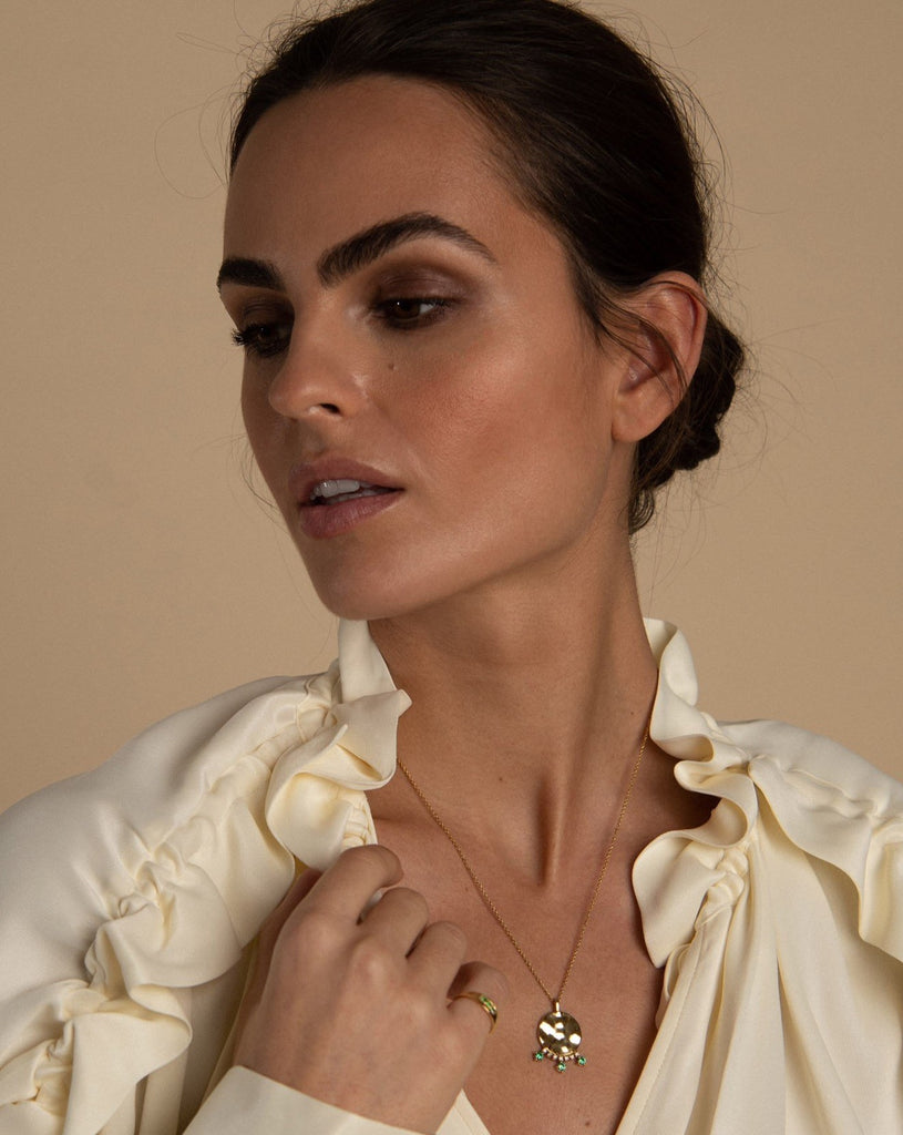 Formed by a medal with ten zircons set surrounding it at the bottom as if it were stars around the Sun. In this pendant we offer you the option of engraving on the back of the medal. Personalize that name, that date or that place that you will always want to carry close to your heart. Length 44 cm.